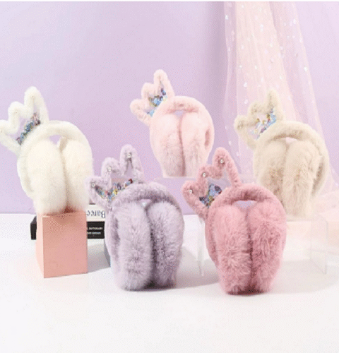 Princess Crown Plush Ear Muffs – Fluffy Warm Winter Earmuffs for Girls | Cute Furry Ear Warmers with Glitter Crown