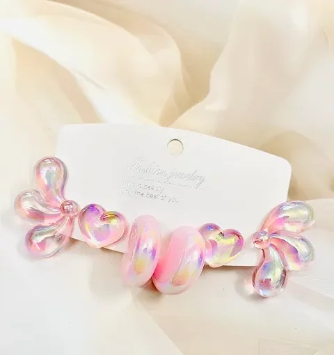 Iridescent Pink Resin Earrings Set – Star, Heart & Hoop Designs | Kawaii Aesthetic Jewelry for Women & Girls