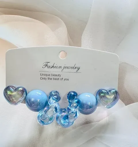Iridescent Blue Heart studs,Twist Hoops & Button studs Earrings Combo – Elegant Glossy Statement Set by Razzle Dazzle