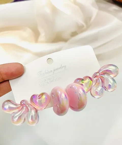 Iridescent Pink Resin Earrings Set – Heart, Crescent Moon & Abstract Drop Designs | Cute Kawaii Statement Earrings for Women & Girls
