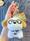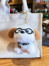 Cute Puppy Plush Keychain with Glasses – Fluffy Dog Key Ring for Bags & Gifts