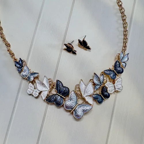 Complete Set: Includes matching butterfly stud earrings.