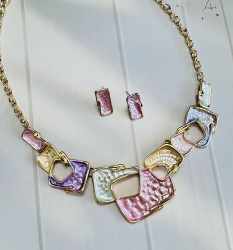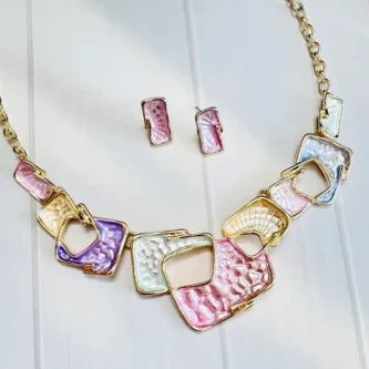 Be the first to review “Elegant Pastel Geometric Enamel Necklace & Earring Set – Gold Chain Statement Jewelry”