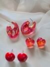 Iridescent Red Resin Earrings Set – Heart, Hoop & Round Designs | Bold Kawaii Statement Jewelry for Women & Girls