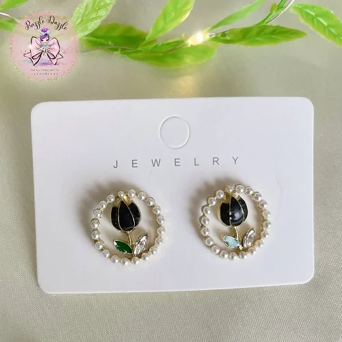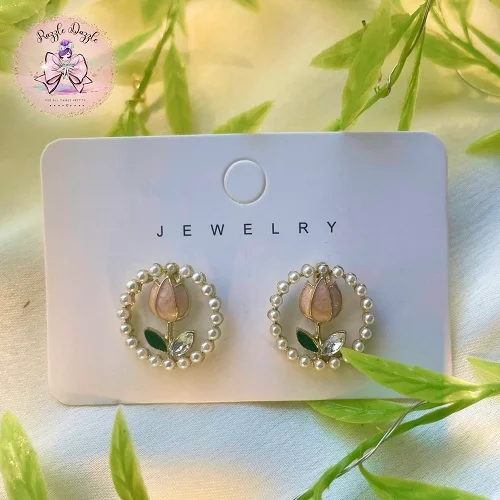 Tulip Pearl round Stud Earrings – Elegant Flower Earrings for Women & Girls